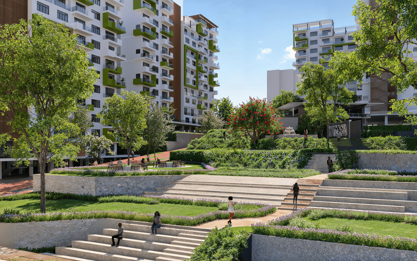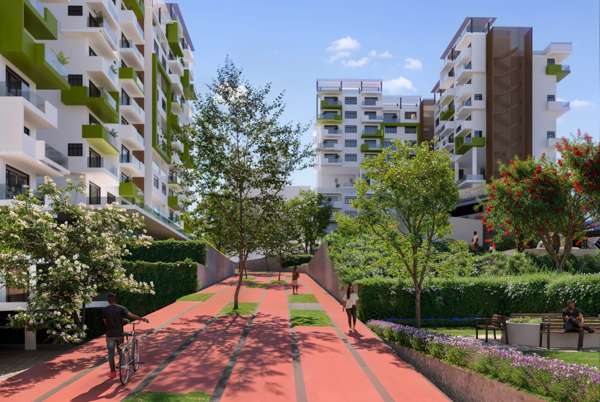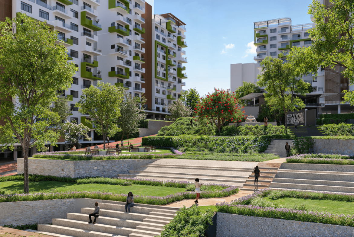 – Pedestrian promenade – Apartment Blocks – Plazas – Pedestrian Walkway – Mugumo Park – Clubhouse/Gym